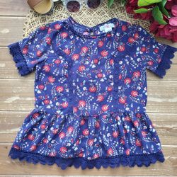 SIZE 6-7 GIRLS BERRY BLUE RED & WHITE FLORAL LACE TRIM COTTON TUNIC $4Merced, CA