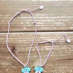 GIRLS 2-PIECE GLITTERY PINK & TURQUOISE BUTTERFLY NECKLACE & BRACELET COSTUME JEWELRY $2Merced, CA