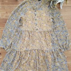 SIZE 10-12 GIRLS MUSTARD YELLOW & NAVY FLORAL SHEER OVERLAY LONG-SLEEVE DRESS$5Merced, CA