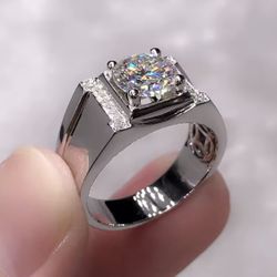 Buyee 925 Sterling Silver Male Wedding Ring White Big Zircon Open Ring for Men Fashion Party Fine Jewelry Circle Gift$25San Mateo, CA