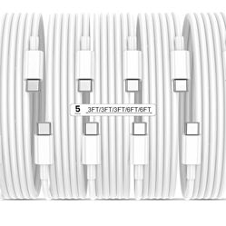 New 5-Pack USB C Cable 60W Fast Charging Cord, [3/3/3/6/6 FT] USBC to USBC Cable Type C Charger Cable for iPhone 17 Pro Max/17 Air/16/15, iPad Pro, Ma$8Newark, CA