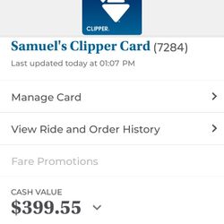 Clipper Bart Start Train Ac Transit Bus$320Fremont, CA