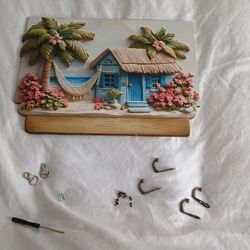 2D FLAT 1PC TROPICAL PARADISE CABIN WOODEN HOME KEY HANGER