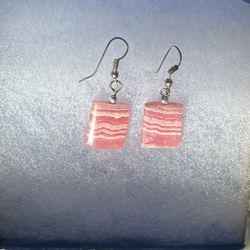 Natural Rhodochrosite Banded Pink Stone Slab Dangle Earrings$18Fremont, CA