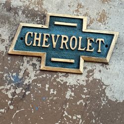 CHEVROLET/ CHEVE CHEVROLET. Chevrolet Cast Iron Embossed Plaque With Painted Antique Finish (9.5" x 5")$65Livermore, CA