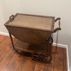 Antique Mahogany Wood Tea Cart Dropleaf Trolley Serving Bar Cart Server Glass Tray$500San Jose, CA