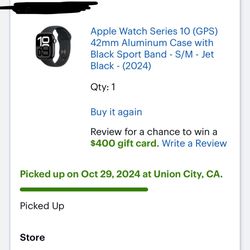 Apple Watch Series 10 Black 42 mm GPS$300San Leandro, CA