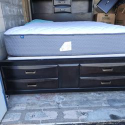 Leather Bedframe + New Mattress In Box. Queen . Cama De Cuero + Colchòn Nueva In Caja $450San Jose, CA