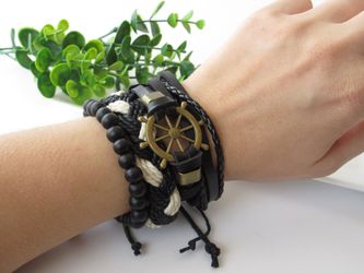 Adjust. Size up to 9.5inc Punk Retro Nautical Leather Bracelet Set of 4, Ship Rudder$8San Jose, CA
