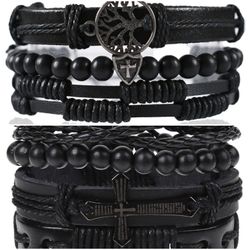 Adjustable Size up to 9.5inc Braided Multi-layer Leather Bracelet (Set of 4), Cross$8San Jose, CA