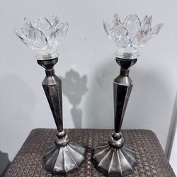 Two Candle Holders - Metal and Glass - Very good condition