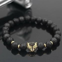 Diffuser Lava Stone Beads Bracelet With Jaguar Charm$10Union City, CA