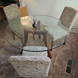 3/4" Thick Glass-Top Dining Table w/ Cherry Base + 4 Upholstered Chairs - $550$550San Jose, CA