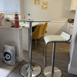 Modern Glass Bar Table + Adjustable White Bar Stool – Excellent Condition $120Los Gatos, CA