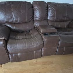 Living Room Set: Brown Leather Sofa + Black TV Stand$575Newark, CA