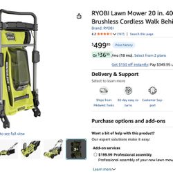 RYOBI Lawn Mower 20 in. 40-Volt Lithium-Ion Brushless Cordless Walk Behind$320Belmont, CA