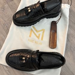 Marc Nolan Women's Ms. Journey Black Croc Leather Lug Tassel Loafer size 7$50San Jose, CA