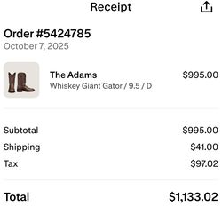 Tecovas- “The Adam’s” Whiskey Giant Gator Square Toe$800San Ramon, CA