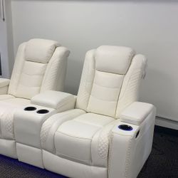 Party Time White LED Power Reclining Loveseat with Adjustable Headrest🚛Same Day Delivery🚨Finance&Delivery Available$1,549San Jose, CA