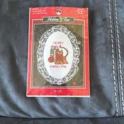New Holiday Time Cat With Presents Cross Stitch 3 1/2” x 5”Lace Ornament$1Fremont, CA