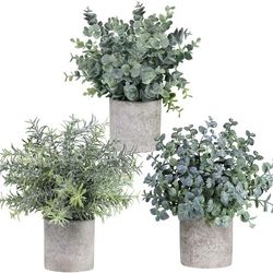 Winlyn Set of 3 Mini Potted Artificial Eucalyptus Plants Plastic Fake Green Rosemary Plant for Home Decor$10Santa Clara, CA