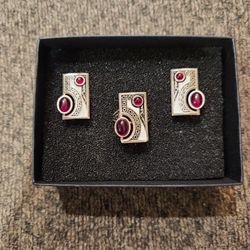 925 Silver Overlay Iron Tiger Eye Coral Earrings $18Palo Alto, CA