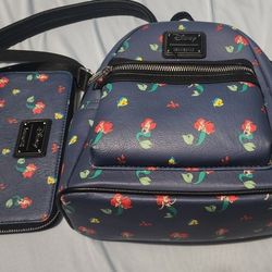 Disney Loungefly Little Mermaid Ariel Flounder Sebastian Mini Backpack And Wallet$70Campbell, CA