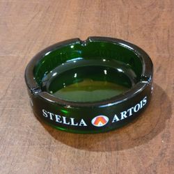 Vintage STELLA ARTOIS Heavy Green Round Ashtray Diameter 5.75" 3 Ports.