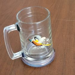 Vintage Princess House Colonial Pheasant Design Glass Beer Mug Steins.