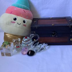 Treasure box of Crystal Glass figurines & Smooshy Pals Ice cream plushie$65San Jose, CA