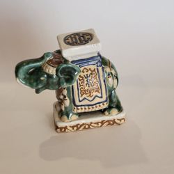 Vintage Asian Majolica Elephant Plant Candle Stand Centerpiece 6" tall.