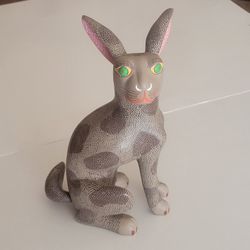 Vintage Mexican Art Folk Rabbit figurine sculpture wood. Signed by
