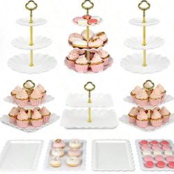 10 PCs / 10 Pcs Cake Stand White Plastic Dessert Table Stand Set 4 Pcs 3 Tired Cupcake Display Stands Cookie Tray Rack Serving Tray Cake Display Tower$40Jurupa Valley, CA
