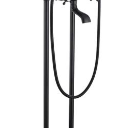 Freestanding Bathtub Faucet Floor Mount Tub Filler with Double Cross Knobs 360° Rotation Spout High Flow Floor Standing Bathtub Shower Bell S$125Anaheim, CA
