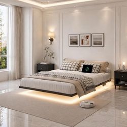 King SIZE Floating Bed Frame, Heavy Duty Bedframe with Smart LED Lights & Charging Station,$109Costa Mesa, CA