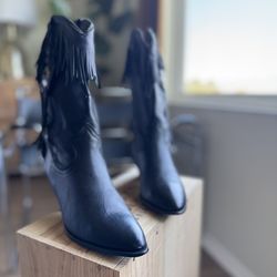 Vintage GOLD ACME Womens Western Fringe Cowboy Boots FESTIVAL SZN Excellent Condition 7 Black Leather stacked heel bc$89Laguna Niguel, CA