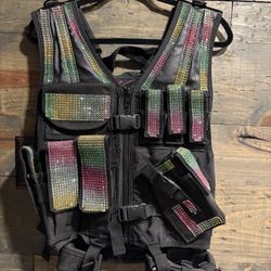 Custom Design Tactical Vest Black Multi Colored Jeweled Design Unisex Large $30Riverside, CA