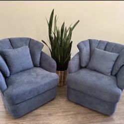 Set Of 2 Oversized Blue Fabric Upholstered Swivel Accent Chair$399Irvine, CA