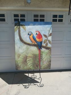 Very large 2 Mccaw parrots oil on canvas painting signed Kent$199Rancho Santa Margarita, CA