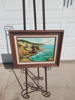 Small vintage framed California Coast oil on canvas painting signed Van Goke with COA$149Rancho Santa Margarita, CA
