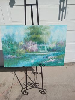 Large unframed Gazebo by flowers pond signed oil on canvas impressionist painting$149Rancho Santa Margarita, CA