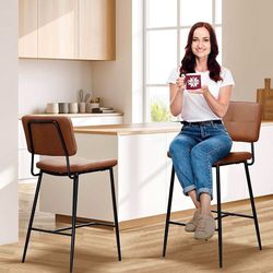 Faux Leather Dining Chairs Set of 2 - 20 Inch PU Leather With Backrest and Metal Leg, Mid Century Modern, Black Upholstered for Kitchen Living Room Ou$125Irvine, CA