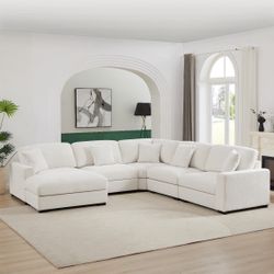 4-Piece White Plush Modular Sectional Sofa – Washable & Comfortable✨$600Artesia, CA