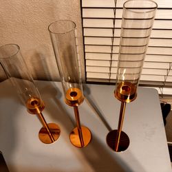 3 Gold Hurricane Candle Holders$20Riverbank, CA