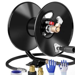MEKOH Pressure Washer Hose Reel 50ftx3/8” / 65ftx1/4”, 4000PSI Heavy Duty Power Washer Hose Reel with M22-14 Fitting, Hand Crank Metal Reel with Wall/$40Valley Home, CA