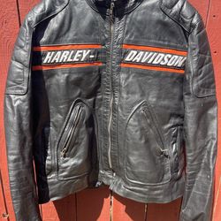 Vintage 90s Harley-Davidson Orange Stripe Leather Motorcycle Biker Jacket Sz XL$150Livingston, CA
