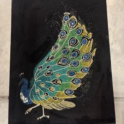 Vintage MCM Beaded Peacock Wall Art Rare 24x17 1/2$85Manteca, CA