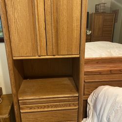 Used solid oak Queen bedroom set. Mirror and lights. All works. Wood in excellent condition.$500Patterson, CA