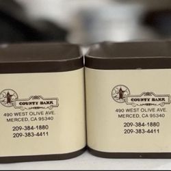 County Bank of Merced Desk Set- Paper Clip Holders & Small Desk Clock $12Stockton, CA