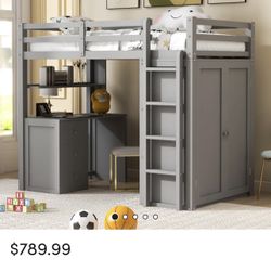 2 Full Size Grey Loft Beds With Desks $250Manteca, CA